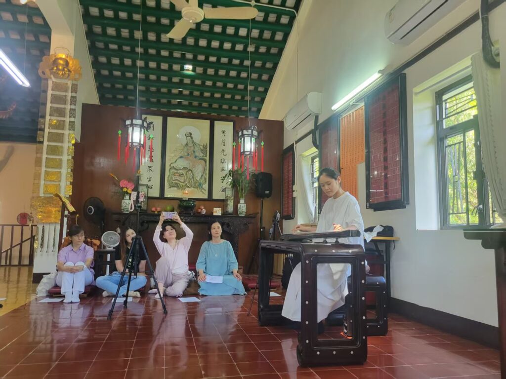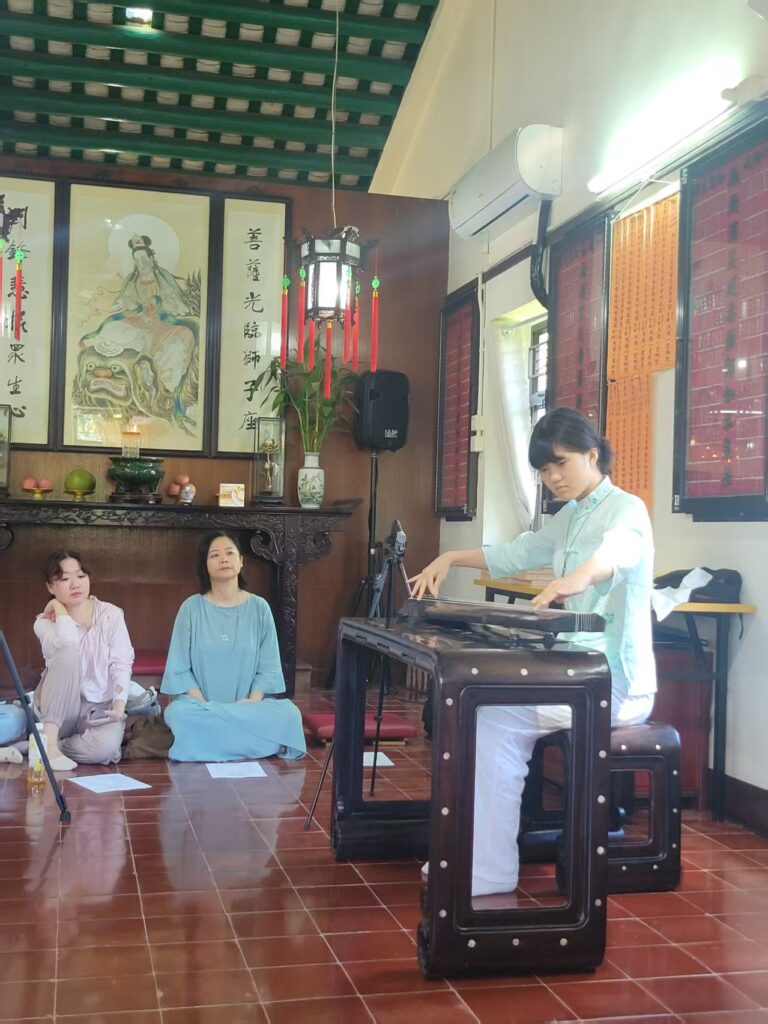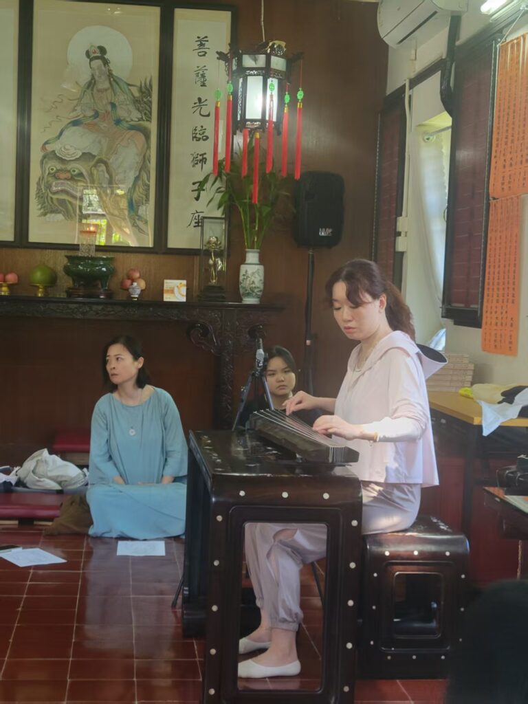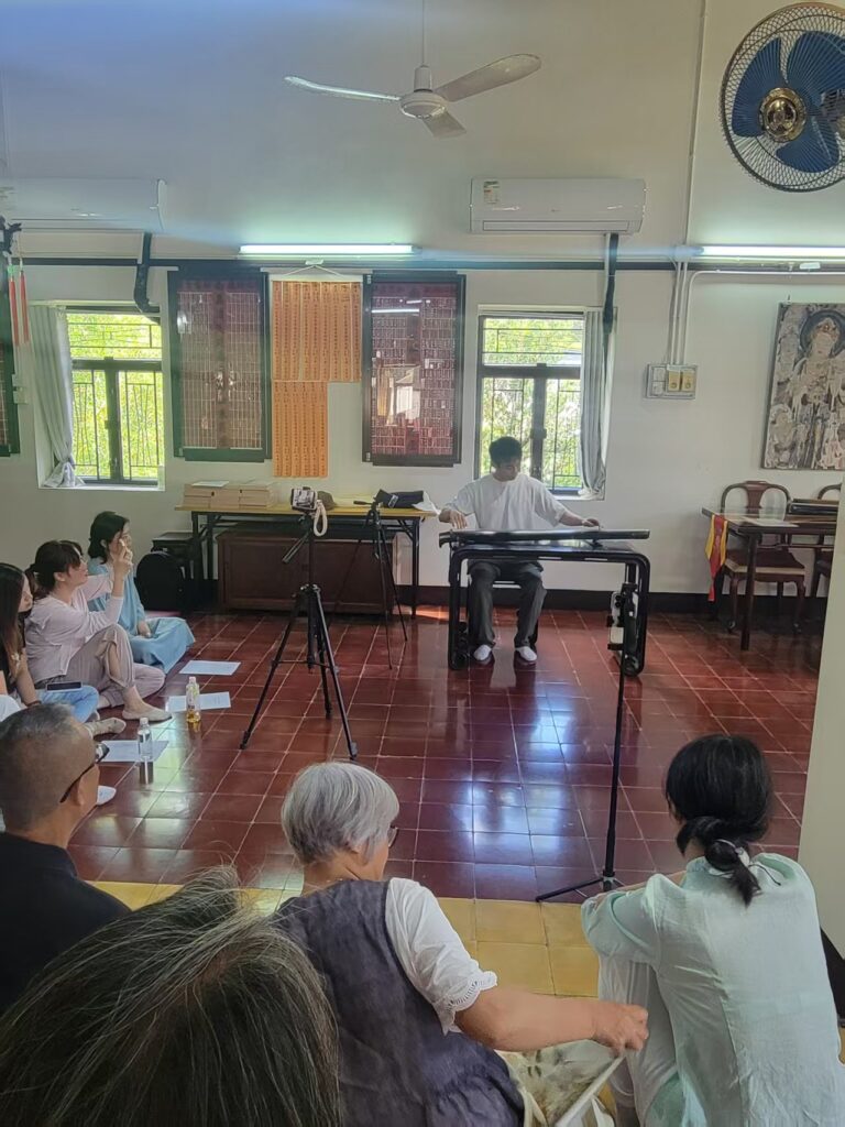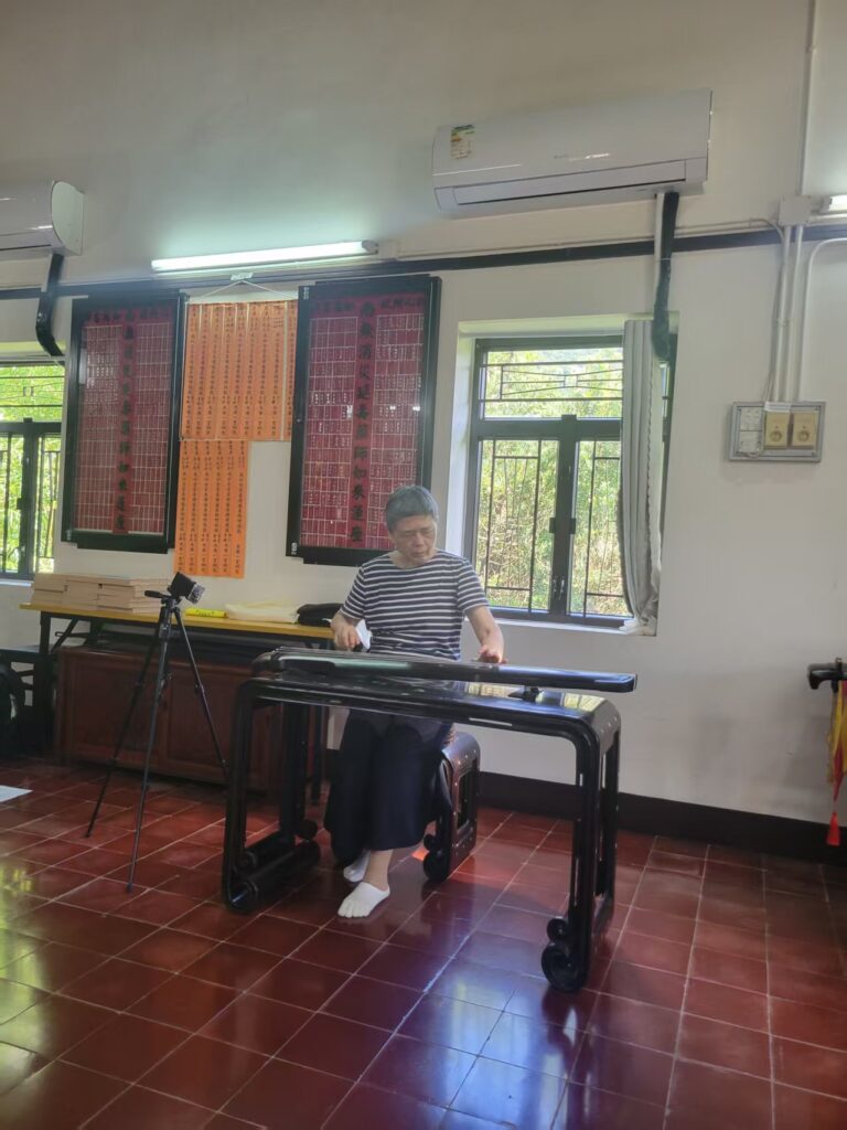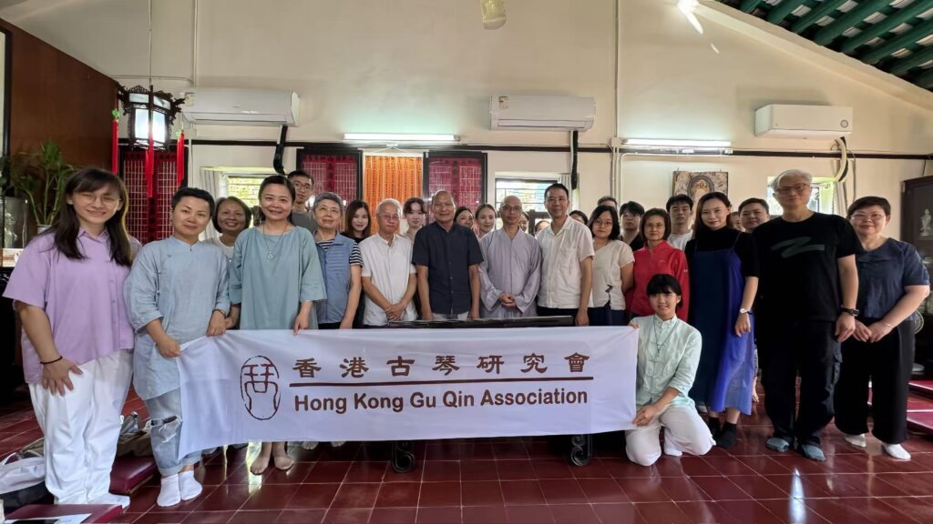 2025年8月23日,香港古琴研究會同仁在香港大嶼山古寺唯心精舍舉行了慶祝琴會成立三週年雅集,此次雅集選址應會友要求,重回之前到訪過之古寺精舍,僧眾亦熱心招待。 當日中午,一眾會友到達山門,風清雲亮,流泉作響,大殿上法相莊嚴,眾人敬上香燭。隨後法師導賞寺中殿堂,用雅潔午齋及自摘山果。 雅集在一點半開始,梁基永會長作簡單回顧,並先彈《碧澗流泉》,隨後容克智,唐笑媚,逸齋,孫銘佑,袁春亞,王煜婷,蔣語童諸君亦先後演奏,以歐栢青會長之龍翔操作結。此次雅集用琴,為凝韻山房所藏明代無款琴。