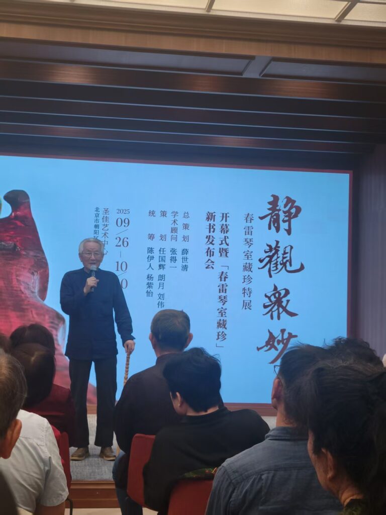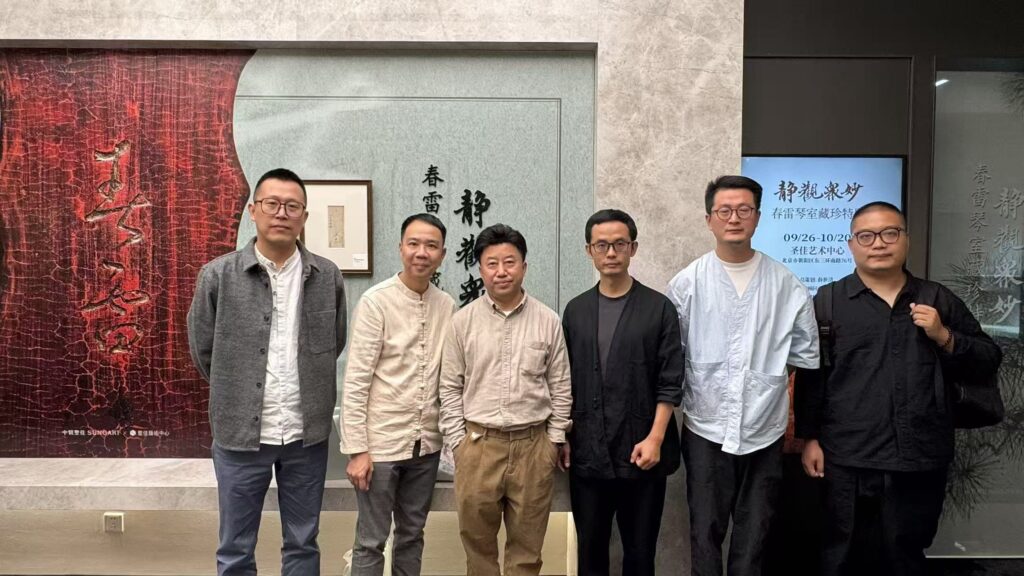 2025年9月25日上午,紀念古琴大家鄭珉中先生的“靜觀衆妙:春雷琴室珍藏”大展在北京聖佳藝術中心隆重開幕,本會梁基永會長應主辦方之邀請,率領逸齋,李頔,鄭玲等會友在十號台風之際輾轉北上,参與盛會。