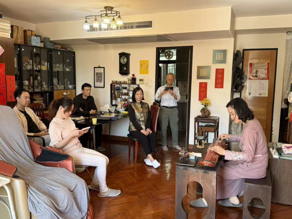 本會於2025年11月30號下午舉行了本年度的初秋古琴雅集,也是本年最後一次雅集活動,這次雅集的場地,在九龍深水埗白田街的賽馬會創意藝術中心二樓,中華文化國際傳播中心舉行,中心於今年新成立,以推動中華文化全球傳播為宗旨,符合本會一貫弘揚古琴文化之初心。 本次雅集時間上在香港大埔大火災之悼念期間,故在雅集開始前,全體與會者肅立為火災死難者默哀,並且特意宣佈本次雅集不設鼓掌環節,只以頷首示意,符合古禮 。 本次雅集參加者近四十人,所用為凝韻山房所藏明代無款仲尼式古琴,雅集首先由容克智老師開場,奏《碧澗流泉》,深圳專程來參加之王煜婷女史彈《長門怨》,又梁基永會長彈《梅花三弄》,歐栢青會長彈《欸乃》,逸齋彈《流水》等,新進會員方面,首次參加雅集的高列可彈《長相思》,阮天璕彈《仙翁操》,賀世棟彈《秋風詞》等。本次應邀參加雅集之書畫名家眾多,計有畫家李得之,方正明,趙占霞,惲娟,書法家施育煌,裘皓等,真所謂群賢畢集,本會特請各位名家與梁基永會長一起合作山水和花卉大畫各一幅,由施育煌老師題字,作為即場慈善競價拍賣,所得款項全數捐贈東華三院之大埔火災專項賬戶,本次雅集之部分書畫作品也在即場競價拍賣,很多未及到場之會友亦在群組紛紛競價,其熱烈之情狀,令人動容,最後全場共籌得善款高達港幣兩萬五千餘圓,已全數捐與東華三院之賬戶。 古琴雖為清高之樂器,然琴人亦應有善與人同之心,本會提倡以琴德育人,是次雅集,得修藝進道之境,不亦樂乎。