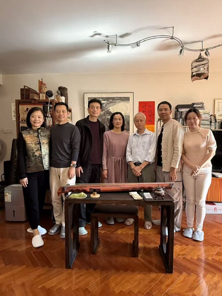 梁基永會長昔年曾從鄭師習琴,故此次特偕琴弟子拜觀大展,并且與故宫古琴修复專家閔峻嶸,廣陵派琴家茅毅,古琴收藏家陶藝,馬俊昌等雅集交流。